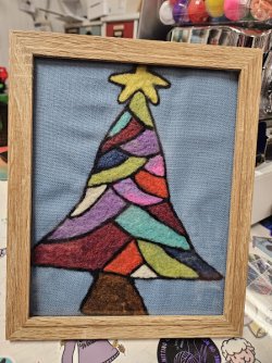 December's needle felting class will be on the 13th at 6:30 pm, and we are making a stained glass tree. This one is fairly simple to do, but covers a large surface area. It will be a time-consuming project, so please plan to arrive on time. The food truck is Hog Tied BBQ! Come early, grab a yummy bite and be ready to make some art! Sign up is on Luppoleto's website and through the link below.
