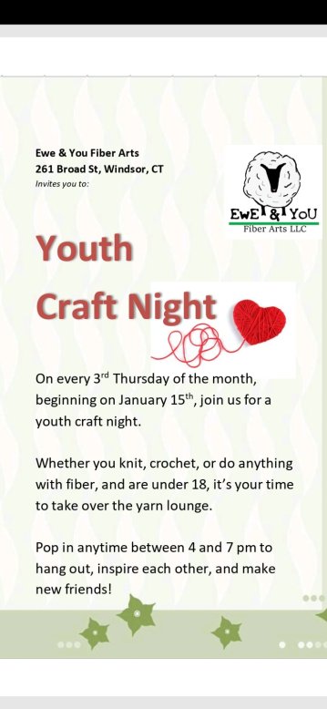 WE will be OPEN SUNDAY the 18th from 11 to 4.This Thursday also kicks off our first monthly Youth Craft Night!