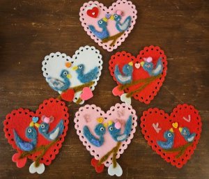 Needle felting was on February 7th, and we made Valentines! Below is a picture of some of the amazing work!